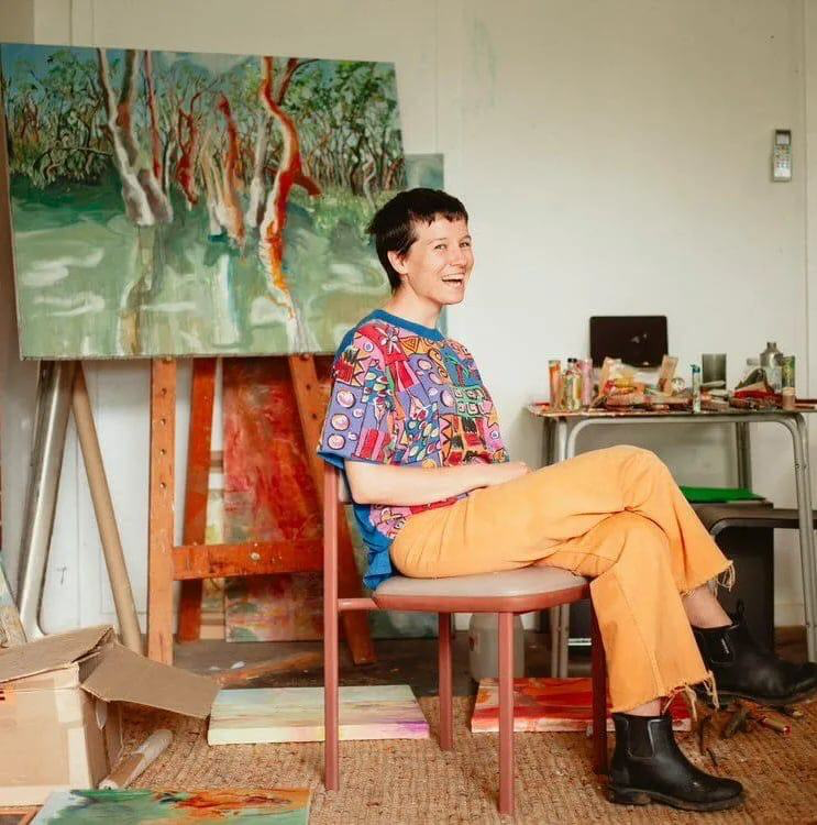 I have a multidisciplinary practice with a focus on landscape painting, textile design and pottery. In all areas of my practice I prioritise sustainability, researching eco-friendly alternative mediums and materials to work with. I often draw from my own experienced landscape as my primary inspiration, working from life or photos taken on walks through the bush. I am interested in blurring the boundaries between what is ‘human’ and what is ‘nature’, looking at how we influence our lived environment and how it influences us.